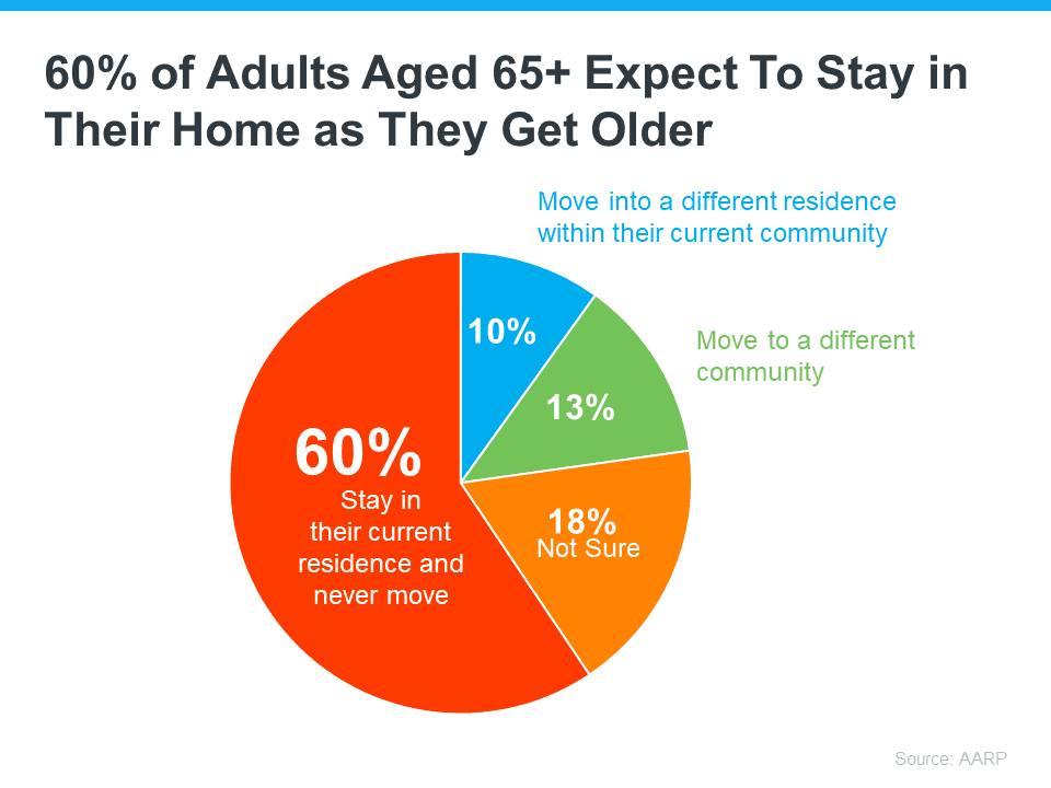 Here’s just one reason why. Many baby boomers don’t want to move. Data from the AARP shows over half of the surveyed adults ages 65 and up plan to stay put and age in place in their current home rather than move (see chart below):